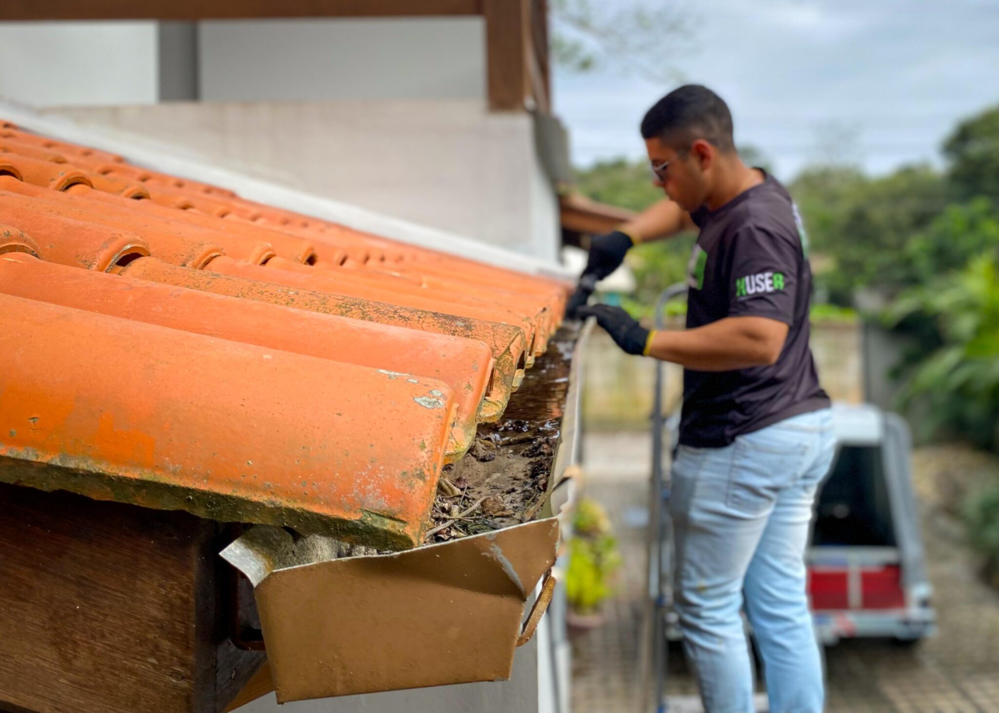 Serviço profissional de limpeza de calhas, com nota fiscal.